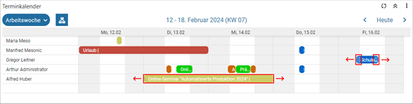 ungruppierten Monats-Ansicht können Termine nur tageweise verschoben werden.