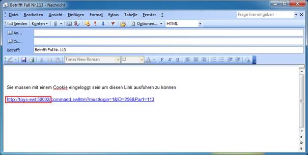Wenn nun aus einem CRM-Fall eine E-Mail über den Button "Mail zum Fall" generiert wird, dann erscheint in der Mail folgender EWL-Link: