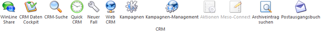 Im CRM-Ribbon sind die wichtigsten Punkte vom WinLine CRM zusammengefasst.
