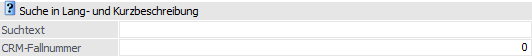 An dieser Stelle kann ein Suchbegriff eingegeben werden kann. Wenn die Suche ausgelöst wird, wird nach diesem Text in der Kurz- bzw. in der Langbezeichnung (intern und extern) gesucht.