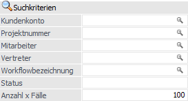 Ø Kundenkonto / Projektnummer / Mitarbeiter / Vertreter / Workflowbezeichnung