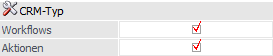 der linke Bereich ("Suchkriterien", "CRM-Typ" und "Einstellung - Workflows") mit