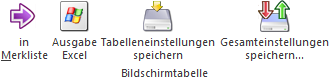 Ø Tabelleneinstellungen speichern