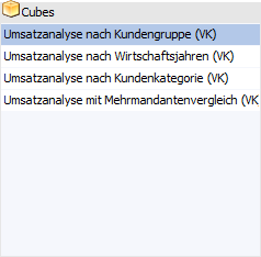 Im Bereich "Cube" werden die bereits vorhandenen Cubes angezeigt.