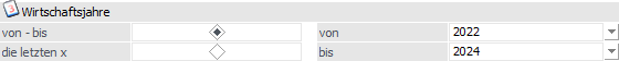 Bei Verwendung der Funktion "die letzten x Wirtschaftsjahre" kann im Eingabefeld die Anzahl der Wirtschaftsjahre angegeben werden.
