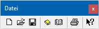 Die Buttonleiste "Datei" wird standardmäßig angezeigt und kann über das Menü "Anzeige" (Punkt "Toolbar" bzw. "Datei Toolbar" -> es darf kein Fenster geöffnet oder es muss die Formularliste aktiv sein) aktiviert bzw. deaktiviert werden.