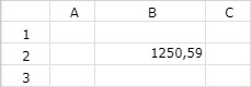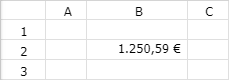 In die Zelle "B2" wurde der Wert "1250,59" eingetragen und als Währung formatiert.