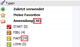 Die Zahl hinter dem Bereich bzw. Typ gibt an, wie viele Datenquellen innerhalb des Bereichs bzw. Typs bereits vorhanden sind.