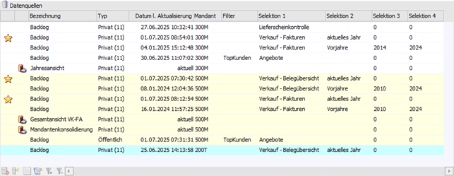 Tabellenbuttons "zu Favoriten hinzufügen" (Tabelle "Datenquellen")
