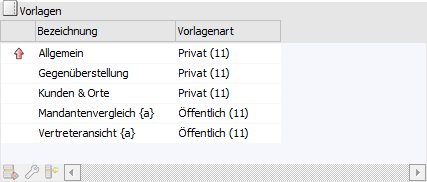 Handelt es sich um einen Vorlagen mit "{}" (z.B. "Vertreteransicht {a}"), so handelt es sich um eine öffentliche Vorlage, welche von dem Benutzer (z.B. "a") veröffentlich wurde.
