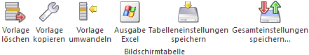 Im Gegensatz zu "Tabelleneinstellungen speichern" können mit "Gesamteinstellungen speichern" mehrere Tabellenaufbauten gespeichert und nach Wunsch geladen werden. Zusätzlich werden Sonderfunktionen der Tabelle (z.B. "Spalte gruppieren") ebenfalls bei der Speicherung bedacht.