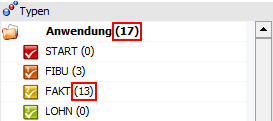 Die Zahl hinter dem Bereich bzw. Typ gibt an, wie viele Vorlagen innerhalb des Bereichs bzw. Typs bereits vorhanden sind.