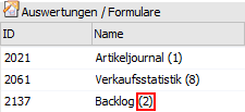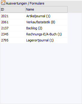 Die Zahl hinter der Auswertung / dem Formular gibt an, wie viele Vorlagen für die Auswertung vorhanden sind.
