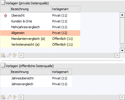 ü Tabelle "Vorlagen" / "Vorlagen (private Datenquelle)" / "Vorlagen (öffentliche Datenquellen)"