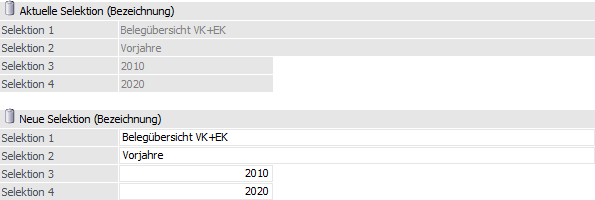 Aktuelle Selektion (Bezeichnung) / Neue Selektion (Bezeichnung)