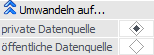 Mit Hilfe des Tabellenbuttons "Datenquelle umwandeln" (Tabelle "Datenquellen") stehen Volladministratoren oder Benutzern mit dem Teiladministrationsrecht "Datenadministration" folgende Funktionen zur Verfügung: