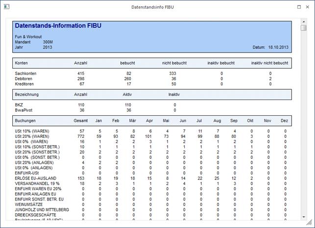 In diesem Punkt bekommen Sie eine übersichtliche Darstellung welche Steuerzeilen bebucht wurden.