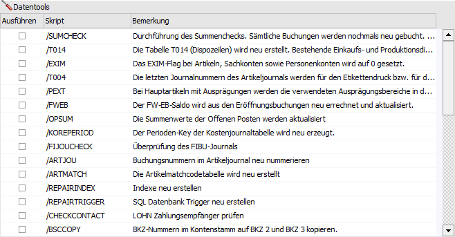 Mit Hilfe dieses Datentools wird eine Überprüfung des FIBU-Journals durchgeführt.