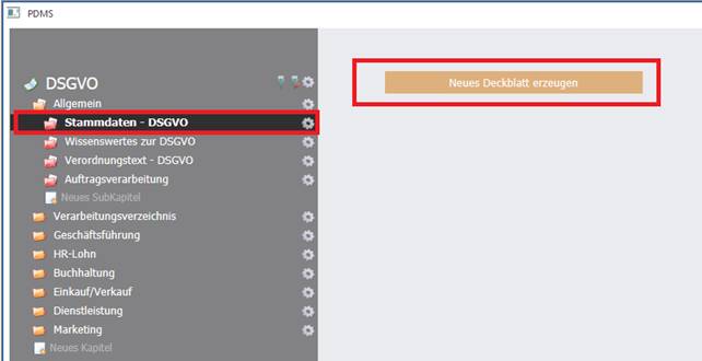 Um ein neues Deckblatt zu erstellen, muss der Button "Neues Deckblatt erzeugen" angeklickt werden.