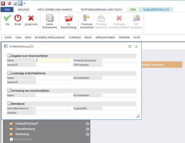 Es wird dann die Vorlage geöffnet und die Informationen können eingefügt werden.