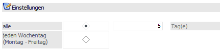 Der Kunde soll entweder an jedem Wochentag telefonisch erreicht werden, oder es wird im Feld "alle …. Tag(e)" der Rhythmus des Anrufs erfasst. "alle 5 Tag(e)" bedeutet, dass der Kunde an jedem 5. Tag kontaktiert werden soll.