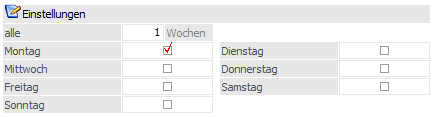 Bei der Einstellung "Wöchentlich" kann gewählt werden, an welchem Wochentag der Kunde kontaktiert werden soll. Eine Mehrfachauswahl ist möglich, es kann also bei der Einstellung "wöchentlich" auch zu mehreren Terminen pro Woche kommen. Des Weiteren kann im Feld "alle …. Wochen" eingestellt werden, dass der Kunde nur nach Ablauf einer bestimmten Wochenanzahl telefonisch erreicht werden soll.