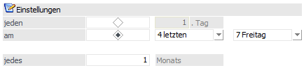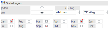 Nach der Einstellung "monatlich" kann im Feld "jeden …Tag" gewählt werden, am wievielten jeden Monats der Kunde kontaktiert werden soll.