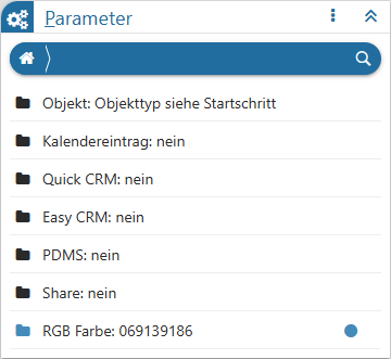 In dem Bereich der Parameter können zum jeweiligen CRM-Schritt weitere Optionen angegeben werden.