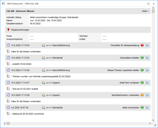 Ist in einem geschrieben CRM-Eintrag dieses Schrittes bereits eine "abweichende" Farbe hinterlegt (z.B. durch die Folgeaktion "76 - Farbauswahl Vorlage"), so wird dieser Eintrag nicht aktualisiert.