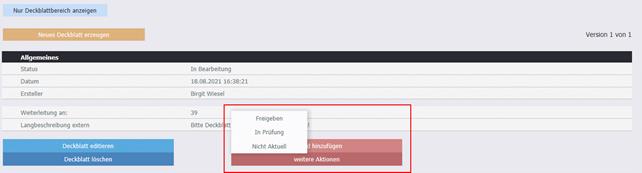 Im Bereich des PDMS besteht die Möglichkeit, über den Button "weitere Aktionen" CRM-Folgeschritte zu einem so genannten Deckblatt auszuführen. Hierzu stehen als CRM-Folgeschritte nur jene zur Auswahl, die die Option "PDMS" aktiviert haben.