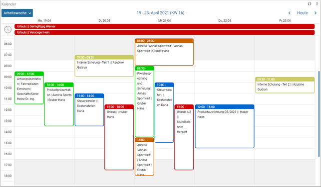 Durch Auswahl einer Farbe können Workflow-, bzw. Aktionsschritte im WinLine Kalender farbig dargestellt werden.