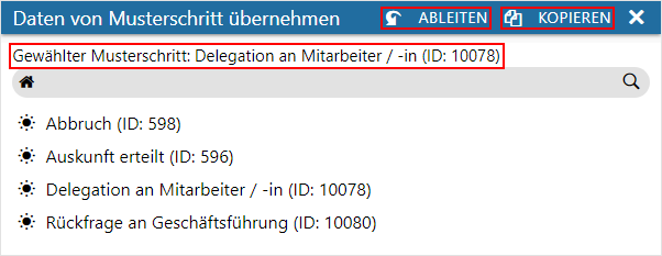 werden die Buttons "Ableiten" und "Kopieren" zur Verfügung gestellt.