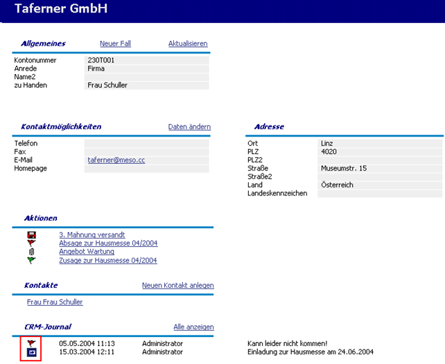 abgefragt werden. Zusätzlich kann in den INFO-Modulen (Bereich "CRM") aufgrund
