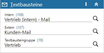 In der Kopfzeile des Bereichs wird die Bezeichnung "Textbausteine" angezeigt.
