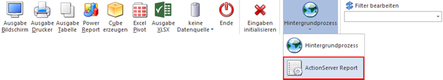 Wird in der gewünschten Auswertung der Button "ActionServer Report" gedrückt, so werden die Einstellungen des Fensters an die Reportdefinition und den ActionServer übergeben. In diesem kann der Zeitpunkt der Aufbereitung / Bereitstellung der Daten definiert werden.