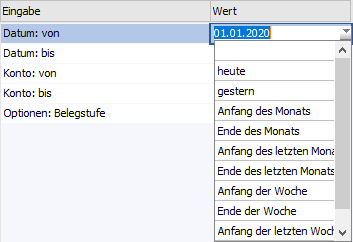 Handelt es sich um ein Datumsfeld, so stehen diverse variable Vorgaben zur Verfügung.