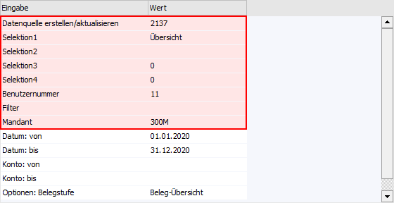 Wurde der Datenquellen-Button auf "Datenquelle erstellen/aktualisieren" gestellt, so werden in roten Unterlegung die Datenquellen-Angaben angezeigt. Diese sind rein informativ und könen nicht geämndert werden.