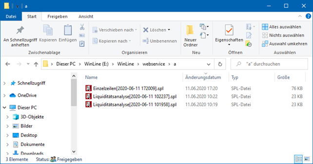 Handelt es sich bei der Ausgabe um einen Ausdruck, so wird dieser im WebService-Verzeichnis des Benutzers abgestellt.