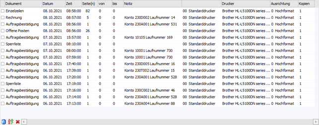 Beim Öffnen des Fensters werden die Dokumente standardmäßig nach Datum/Zeit absteigend sortiert. D.h. das zuletzt gedruckte Dokument erscheint an erster Stelle in der Tabelle.