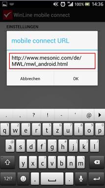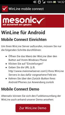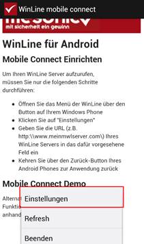 Unter WinLine mobile URL kann der jeweilige Pfad zum WinLine Server mit dem Zusatz "/WinLine mobile" hinterlegt werden.