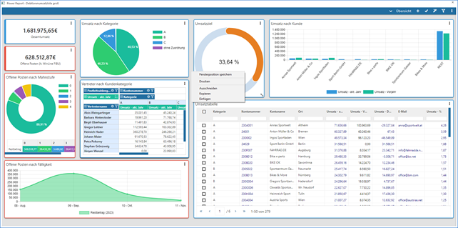 Mit dieser Option kann das Cockpit bzw. der Power Report ausgedruckt werden. Es handelt sich hierbei um einen HTML-Ausdruck, d.h. das Druckergebnis hängt u.a. von der Positionierung der Elemente im Cockpit / Power Report ab.