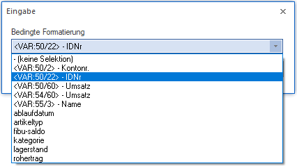 Diese Option steht nur WinLine-Administratoren zur Verfügung und damit wird ein Fenster geöffnet, aus dem die gewünschte Bedingung (muss im WinLine ADMIN definiert worden sein) für dieses Eingabefeld ausgewählt werden kann.