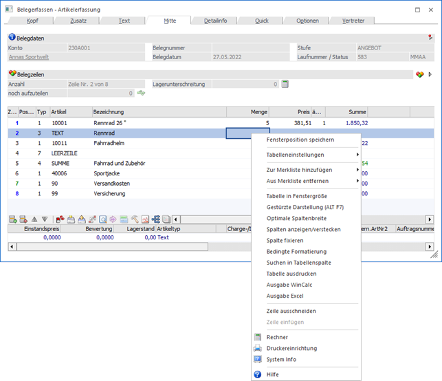 Eine detaillierte Beschreibung der Funktionen ist dem Kapitel WinLine Bedienung - Tabellen zu entnehmen.