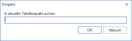 Durch Anwahl der Funktion "Suchen in Tabellenspalte" kann in einer Spalte nach einem Begriff gesucht werden.