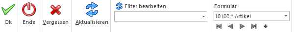 Über die so genannten VCR-Buttons, welche in jedem Register zur Verfügung stehen, kann durch Mausklick zwischen den Datensätzen geblättert werden bzw. per +-Button neue Datensätze angelegt werden.
