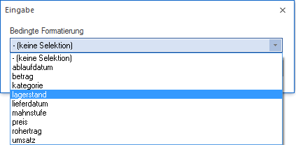 WinLine Tabelle kann über die rechte Maustaste die Option "bedingte