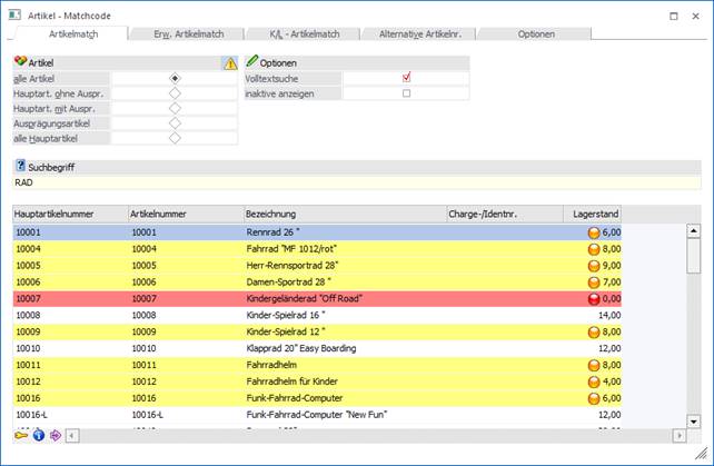 Hier wird der Artikelmatchcode abhängig vom Lagerstand entsprechend eingefärbt.