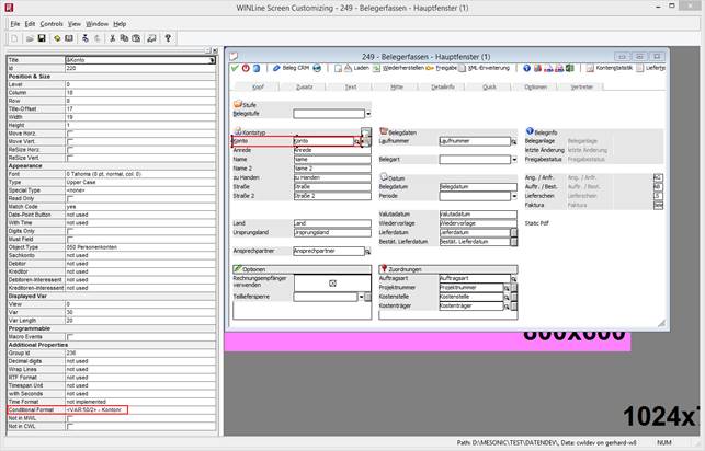 im WinLine CTK pro Eingabefeld ein "Conditional Format" hinterlegt werden.