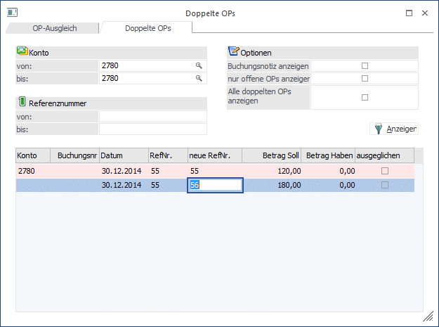 In dieser Funktion können Sie - versehentlich - mehrmals verwendete Referenznummern neu benennen, um Verwechslungen beim Ausziffern der Sach-OPs zu vermeiden.