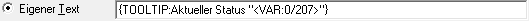 Handelt es sich um einen von der WinLine fix vorgegebenen DrillDown, so wird die Auswahl "Eigener Text" verwendet. Zusätzlich können über diese Auswahl ToolTips mit maximal 79 Zeichen gebildet werden, wobei hierfür die Syntax "{TOOLTIP:Beschreibungstext}" zu hinterlegen ist. Eine Verwendung von Variablen ist ebenfalls möglich.